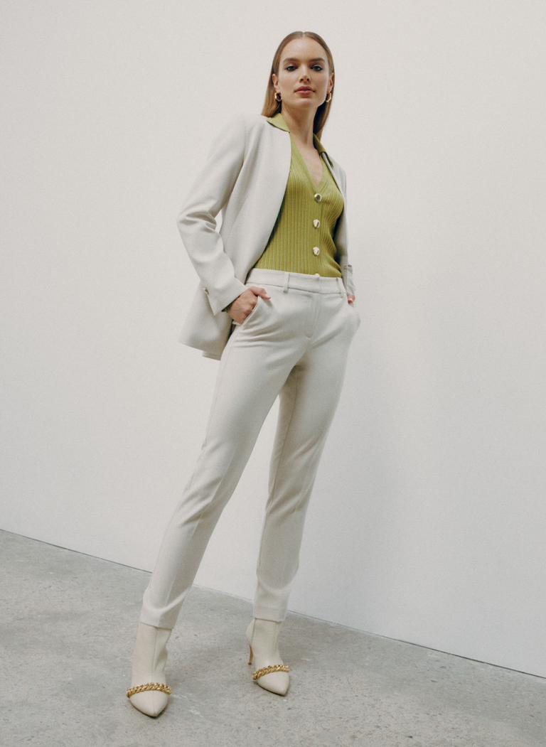 When it comes to pants that can transition from a busy workday to an evening soirée, a sleek structured pant like Giselle reigns supreme. Crafted from viscose blend with stretch which offers breathability, softness and versatility, these slim ankle pants boast a high-rise design for a polished look. Opt for a matching blazer in our light shade of latte for a monochromatic moment, then layer with jewelry in a complementary tone to make your accessories pop.