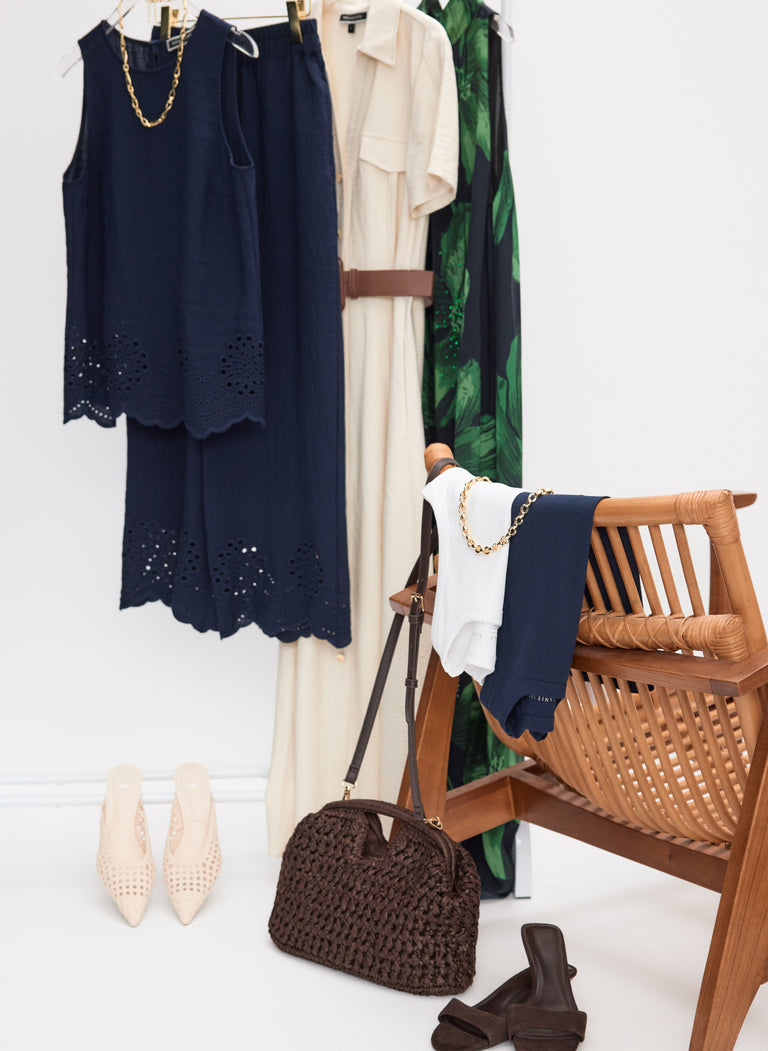 When impromptu nighttime plans strike, you need an outfit that’s ready for whatever you get up to. An airy eyelet set will have you looking instantly put together while allowing for ease of movement. Plus, mixing and matching the separates is always a good idea, too.