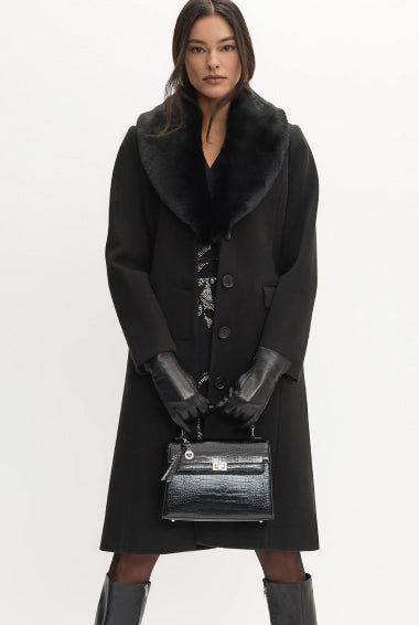 Lending practical polish to the everyday, our wool trench coat comes with a detachable faux fur collar and optional tie-belt. Style yours with complementary fur-trim gloves.